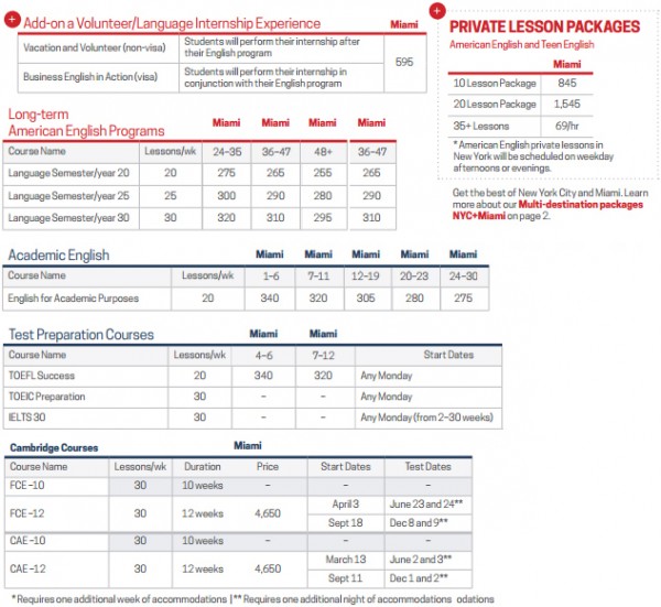 | 프로그램 | American English Program Vacation 'n Learn 주당 16레슨 이 프로그램을 통해 학교 위치를 깊이 경험하면서 영어 실력을 향상시킬 수 있습니다. 일주일에 네 번 오전, 오후 또는 오후에 네 번의 수업을 받게됩니다. Rennert의 다양한 활동 일정을 활용하여 매일 3일간의 주말뿐만 아니라 나머지 시간을 즐길 수 있습니다. 강사로부터 더 많은 관심을 받으며 충분한 말하기 말하기, 그룹 활동, 쌍 작업 및 발표에 중점을 둡니다. 교사가 진행하는 견학 및 문화 활동으로 수업이 향상됩니다. 수업: 주당 16레슨/주4일/ 1일 4레슨(금요일선택가능) 한반인원: 최대 12명 레벨: 초급-고급 수업시간: 오전 9시-오후 12시 40분 또는 오후2시-오후 5시 40분 개강일: 매주 월요일 Rapid Progress 주당 20레슨 이 세미 인텐시브 프로그램을 통해 뉴욕에서 과외활동을하면서 충분한 시간을 들여 영어 공부를 빠르게 진행할 수 있습니다. 수업은 하루 4시간, 오전 또는 오후에 진행됩니다. 뉴욕의 Rennert 학생들과 함께 제공하는 모든 것을 즐기기 위해 자유시간을 이용하십시오. 영어 실력을 향상시키고 의사 소통을 향상시키고 자합니다. 이 프로그램은 새로운 언어 실력을 사용할 수있는 기회가 많아서 영어권 국가에서 듣기, 말하기, 읽기 및 쓰기를 배우고 실습하는 데 도움이됩니다. 수업: 주당 20레슨/ 주4일/ 1일 4레슨 한반인원: 최대 12명 레벨: 초급-고급 수업시간: 오전 9시-오후 12시 40분 또는 선택과목은 오후2시-오후 4시 5분 개강일: 매주 월요일 Rapid Progress 주당 30레슨 우리의 가장 집중적 인 프로그램은 오전 수업과 오후 수업 (금요일 수업은 없습니다)이 포함 된 하루 6교시 수업을 제공합니다. 특히 대화 기술에 중점을 둡니다. Rennert는 교실 학습을 보완하기위한 광범위한 활동 일정을 제공합니다. 수업 시간에 영어를 배우고 저녁 시간과 주말에 뉴욕을 즐겨 보세요! 영어 실력을 향상시키고 의사 소통을 향상시키고 자합니다. 이 프로그램은 영어를 사용하는 나라에서 듣기, 말하기, 읽기 및 쓰기를 배우고 실습하는 데 도움이되며 새로운 언어 기술을 사용할 수있는 기회가 충분히 주어집니다. 수업 프로그램에는 대화, 발음, 작문 및 TOEFL 준비와 같은 다양한 관심사가있는 추가 수업 선택 수업이 포함되어 있습니다. 수업: 주당 30레슨/주5일 한반인원: 최대 12명 레벨: 초급-고급 수업시간: 오전 9시-오후 12시 40분, 오후2시-오후 5시 40분 개강일: 매주 월요일 Business English 변화하는 비즈니스 세계에서 의사 소통하는 데 필요한 언어 능력을 개발함으로써 성공적인 경력을 쌓을 수 있습니다. 이 과정은 대학생 및 비즈니스 경력을 추구하려는 최근 졸업생에게 이상적입니다. 이전 직장 경험은 기대하지 않습니다. Rennert의 비즈니스영어 수업은 지도력, 마케팅, 외국인 투자, 자금 및 금융, 새로운 시장 및 팀 구성과 같은 주제와 관련된 언어에 초점을 맞추고 소개하는 주 단위 모듈을 보유하고 있습니다. 비즈니스 영어 어휘를 늘리고 모의 비즈니스 시나리오, 토론, 서면 연습 및 프레젠테이션에 사용하십시오. 수업: 주당 20레슨, 주당 5레슨, 하루 4레슨 한반인원: 최대 12명 레벨: 중상급-고급 수업기간:1 - 16주 수업시간: 오전 9시-오후 12시 40분 또는 오후2시-오후 5시 40분 과정 완료시 수료증 개강일: 매주 월요일
